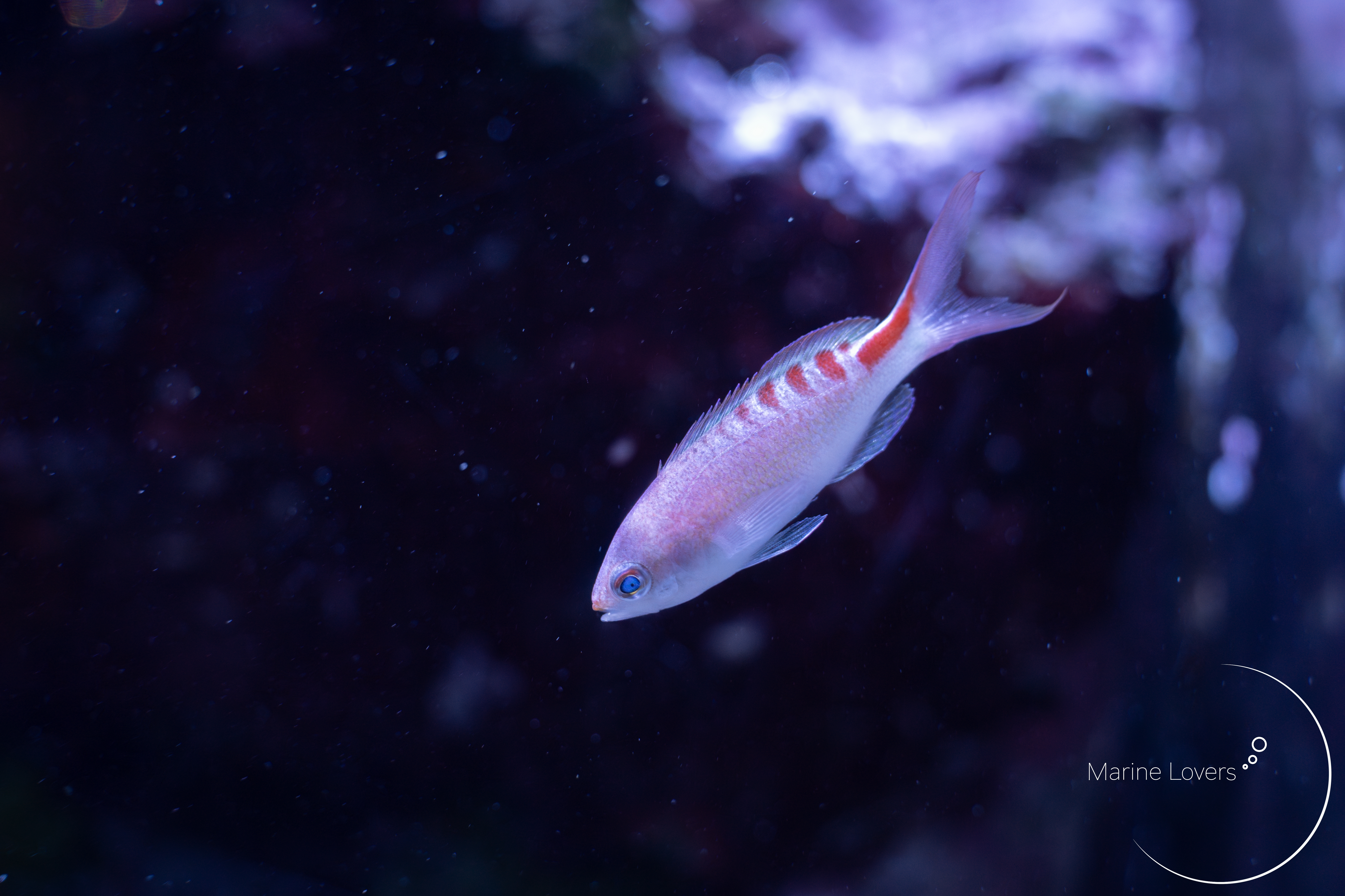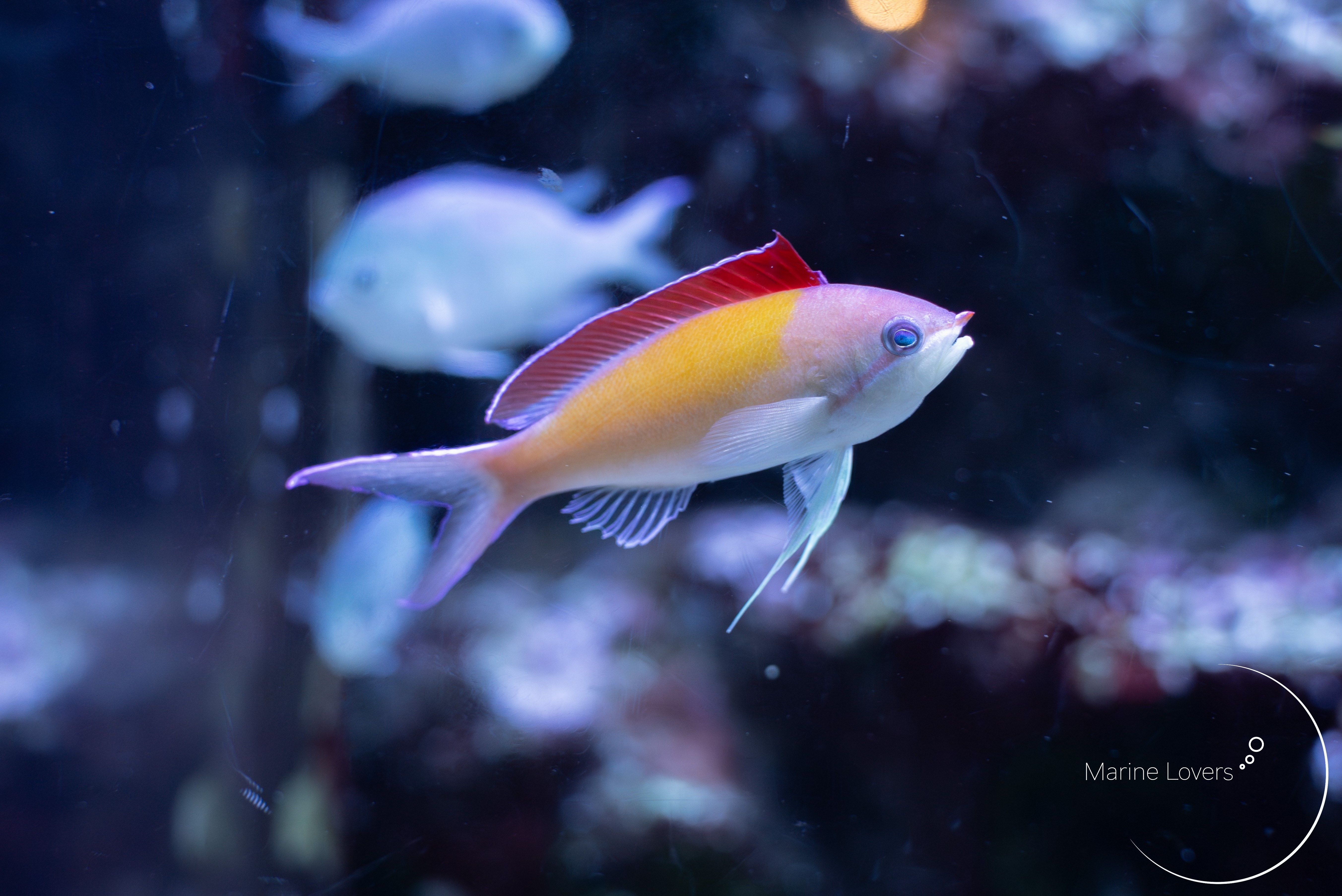 またあえて広角で1匹の被写体に寄ることで、水槽の広さを感じさせる写真を撮ることもできます。
