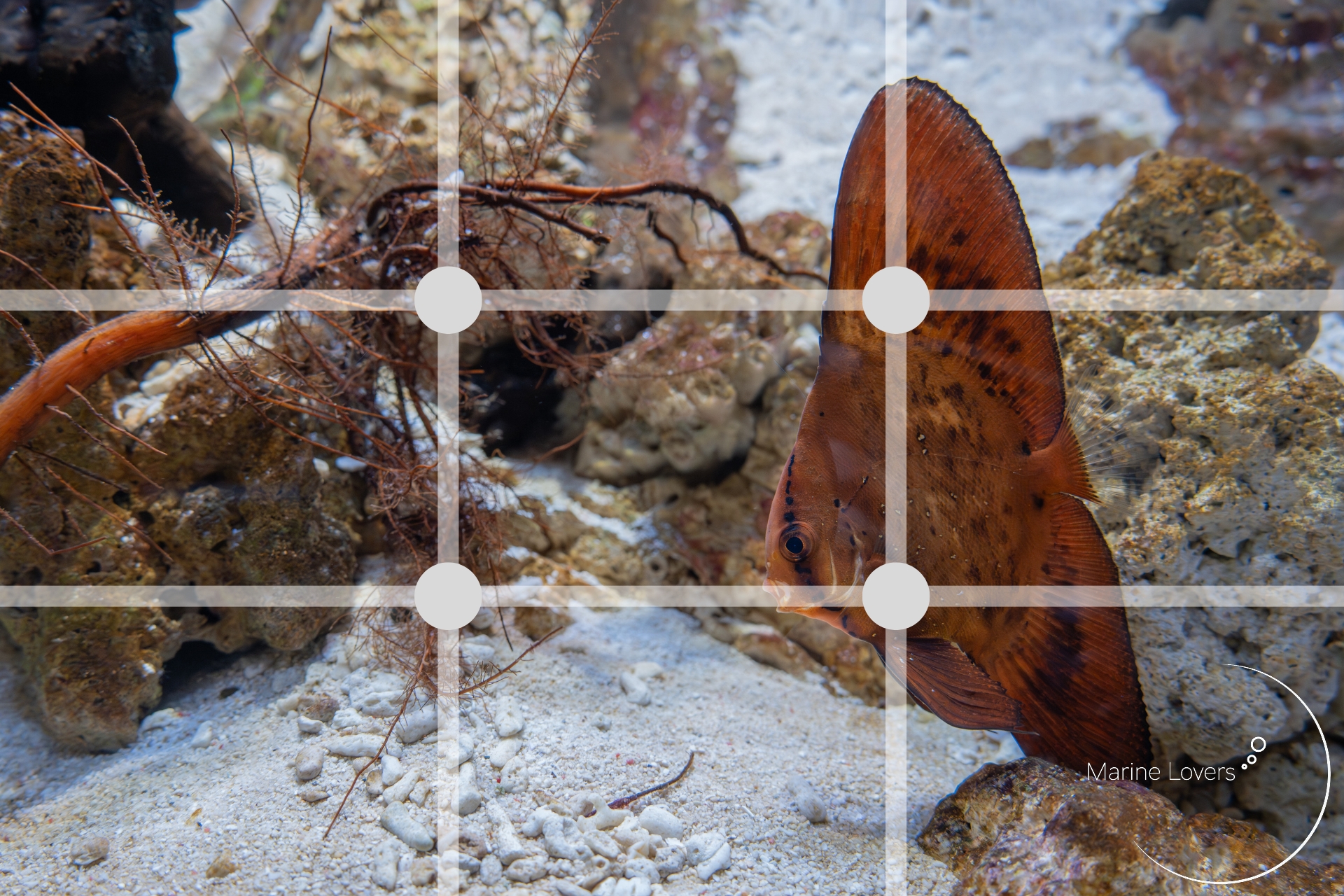 一般的な魚の撮影でおすすめの構図は2種類。「三分割構図」と「中心構図(日の丸構図)」です。